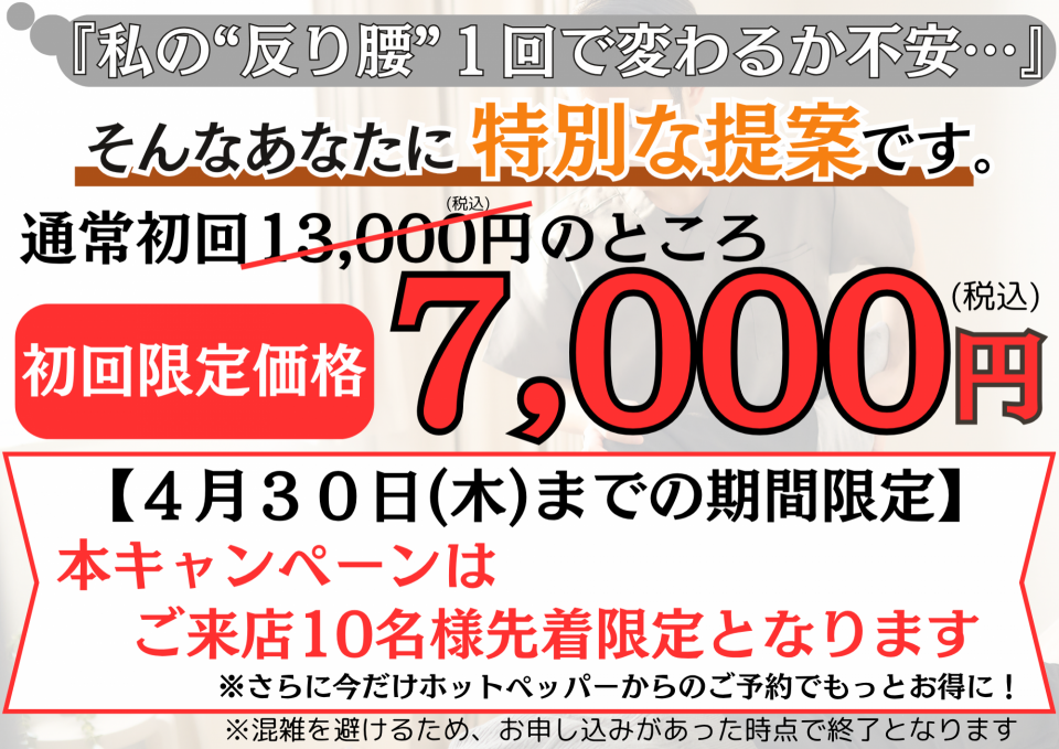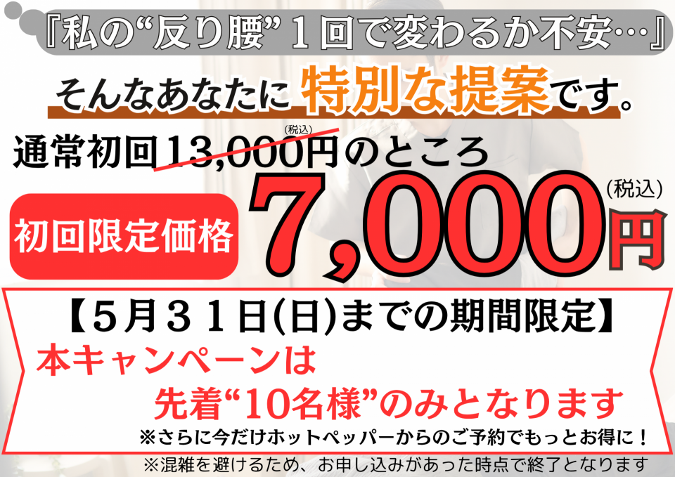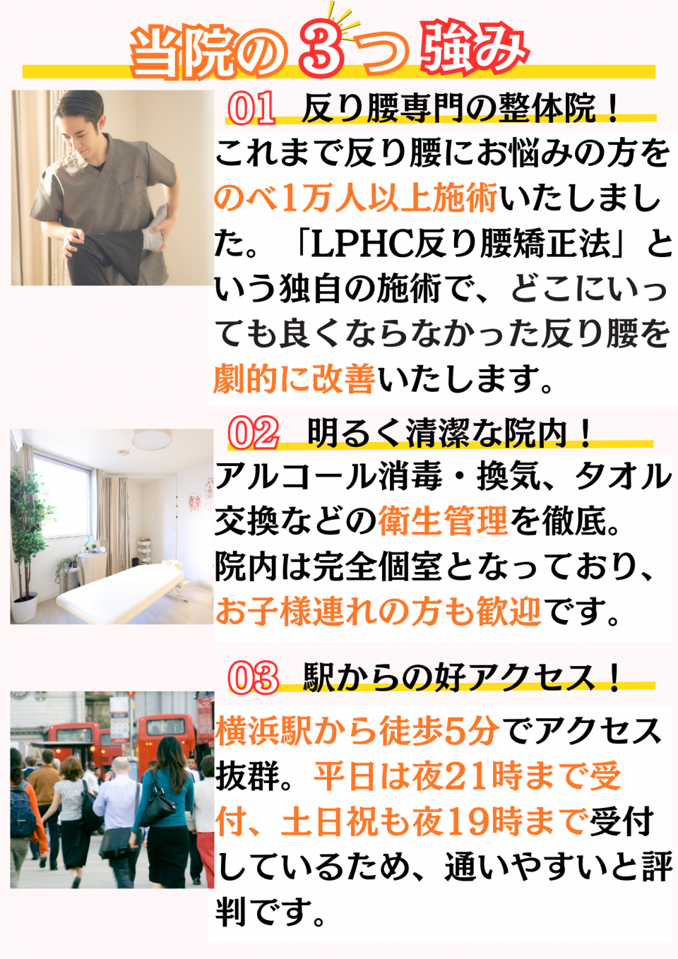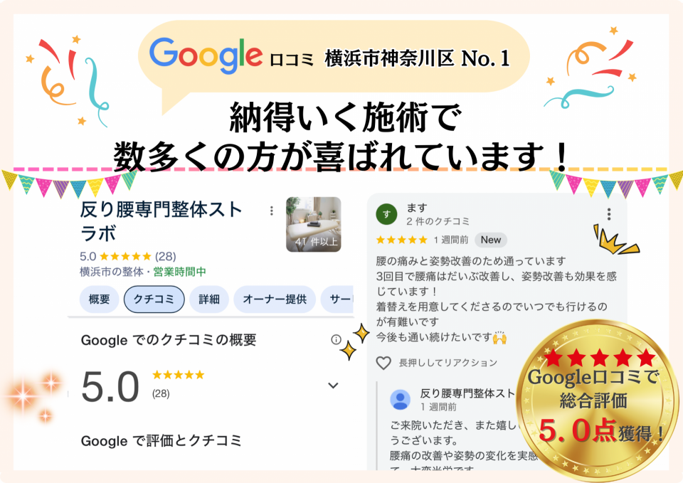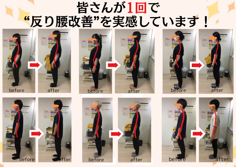A. はい。ほとんどのお客様が1回目から効果を実感しています。ぜひあなたも反り腰専門整体を試してみませんか?
