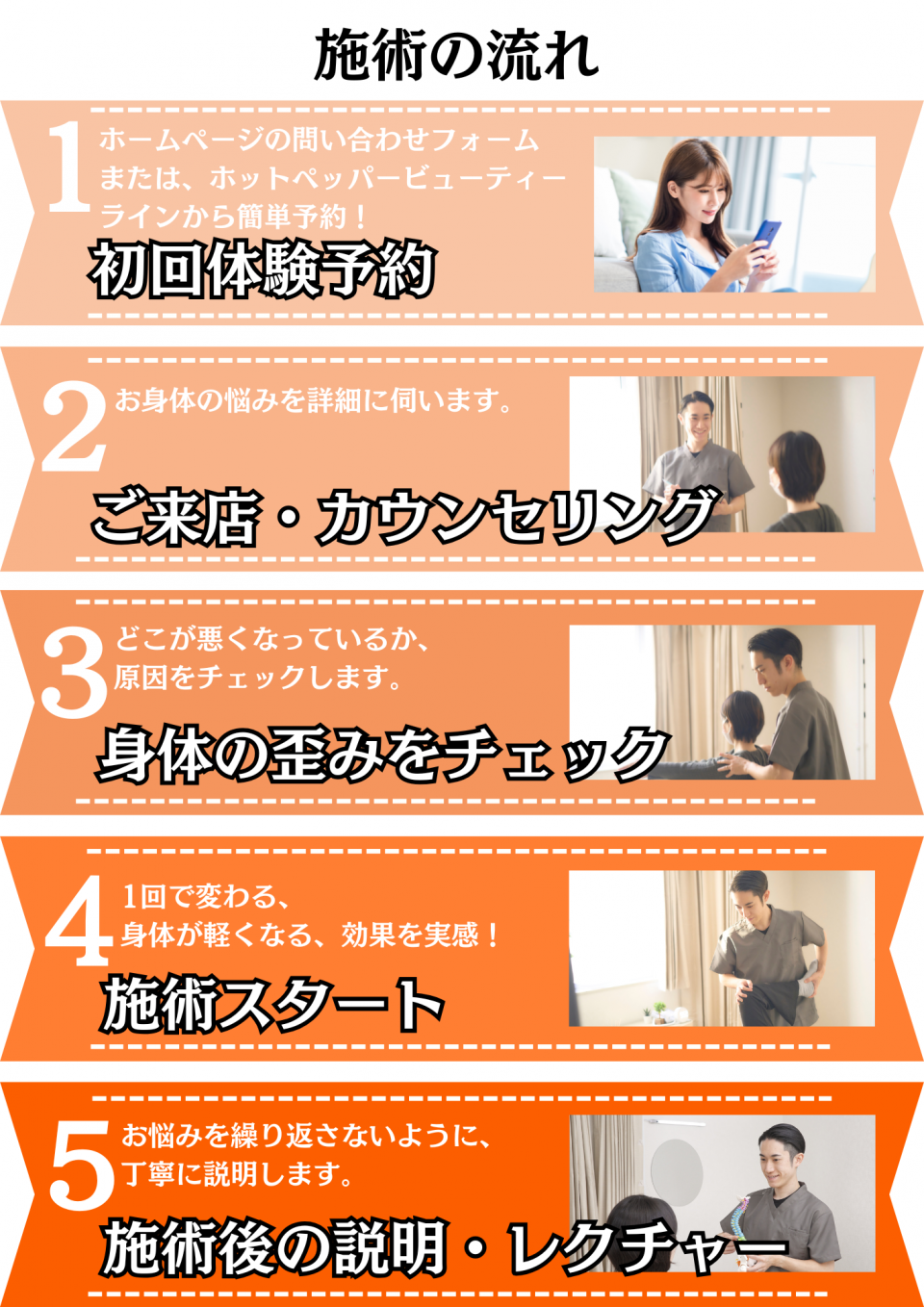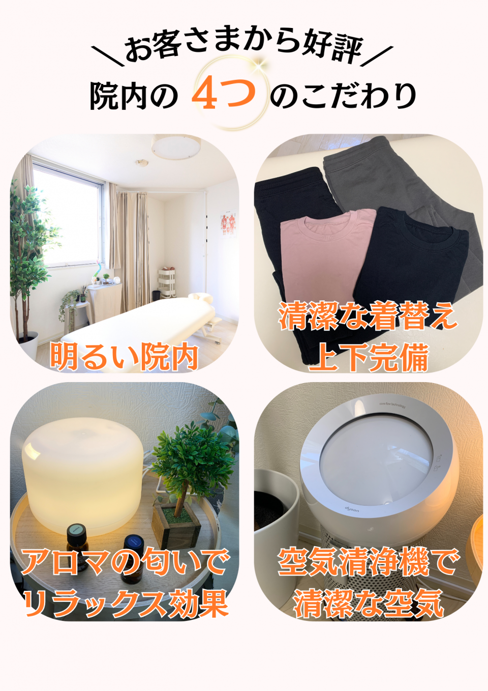 また、痛みやくすぐったさを感じる場合は、遠慮なくお知らせください。お一人おひとりの状態に合わせて調整いたしますので、安心して施術を受けていただけます。